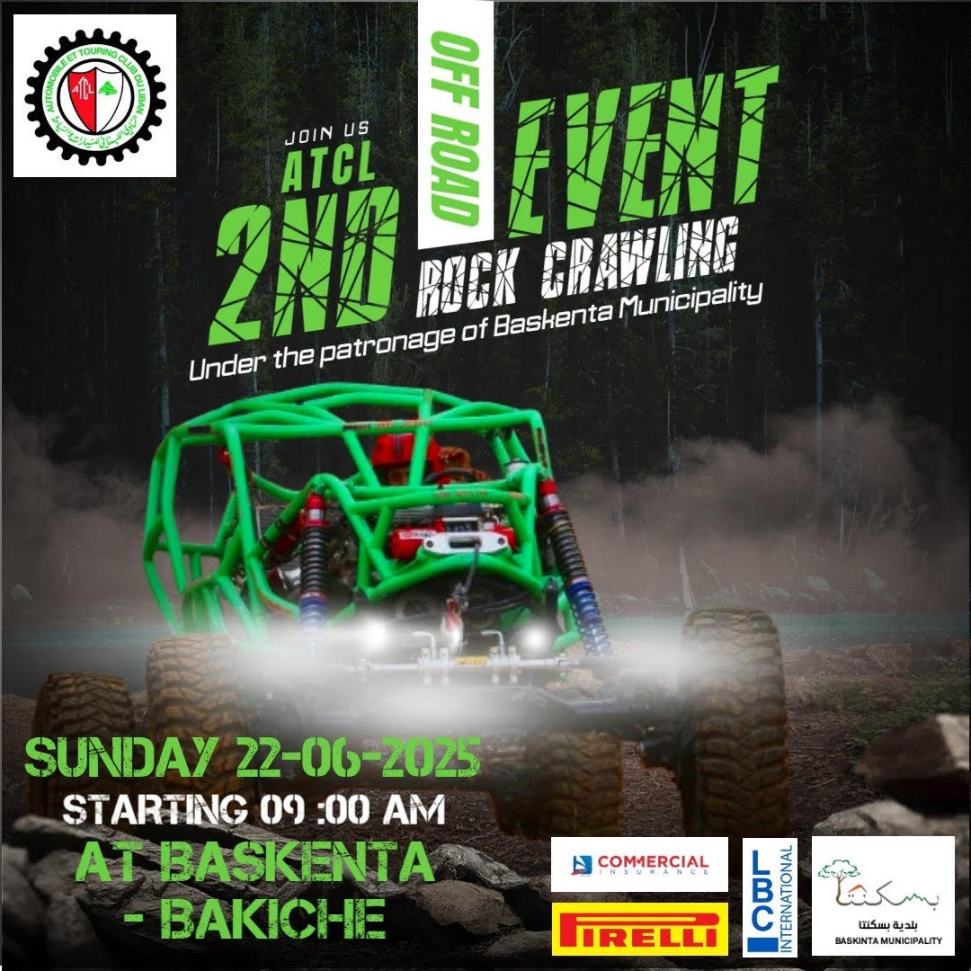 ينظّم النادي اللبناني للسيارات والسياحة المسابقة الثانية لتحدي الصخور والعوائق(روك كراولينغ) في بسكنتا(قناة باكيش) الأحد 22 حزيران برعاية بلدية بسكنتا.