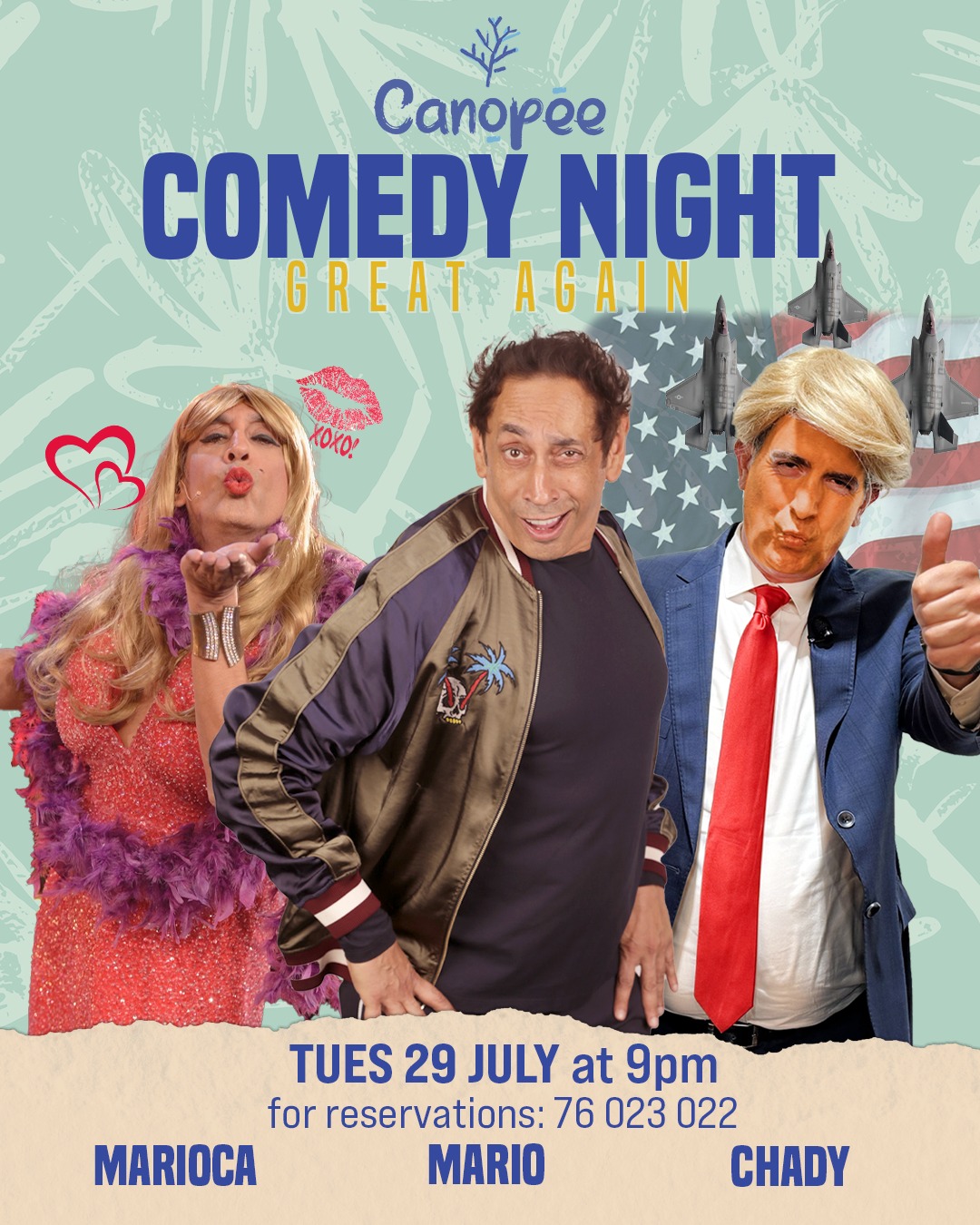 استعدوا لأمسية مليئة بالضحك والطرافة مع العرض الكوميدي المنتظر “Comedy Night – Great Again” يوم الثلاثاء 29 تموز/يوليو الساعة 9:00 مساءً.