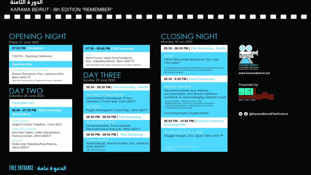 مهرجان كرامة – بيروت لأفلام حقوق الإنسان في نسخته الثامنة ينطلق يوم الجمعة ٢٧ حزيران